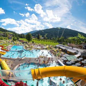 Auch der Wasserwelt Wagrain sorgt bei jedem Wetter für Abwechslung: mit Rutschen, Kinderbecken, Innen- und Außenbereichen sowie einer großzügigen Liegewiese ist Badespaß garantiert.